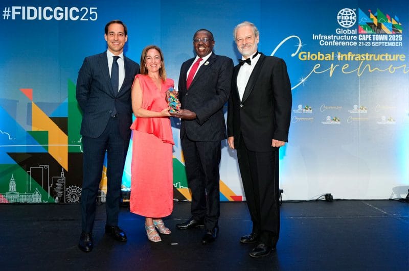 The Pamban elevated bridge project in India, developed by TYPSA-STUP-MC2, received the recognition of Project of the Year (Small to Medium Project). This is an outstanding achievement, considering the quality and the number of the submissions received. Pablo Bueno, Joaquin Barba and Ines Ferguson were present to receive the award, and they had the opportunity to congratulate the new president of FIDIC for 2025-2027, Alfredo Ingletti, representing the Italian association OICE.