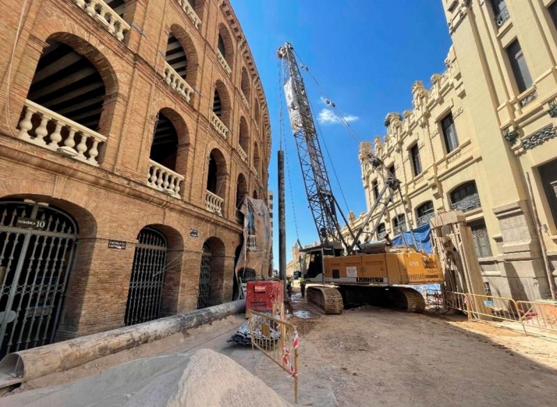 - the presence of two cultural heritage sites (< 2 m) close to the route of the connection, namely the Estación del Norte railway station and the Plaza de Toros bullring in the city of Valencia. To reduce the potential impact on these buildings, the maximum permissible ground deformations on the outer face of the walls were limited, excavation methods that minimise deformations in the screens used, and passive protection with micropile screens installed in critical sections. The suitability of the designs and construction procedures were verified by a real-time monitoring campaign that controlled deformations in the ground and nearby buildings, as well as the condition of the slabs and structural walls.