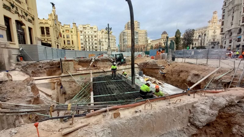 - the existence of numerous pre-existing services that had to be diverted. The replacement of large-diameter sewage collectors (Ø 2000), water supply trunk pipes (Ø 600), main communication lines, gas and even historic irrigation ditches, such as the Rovella ditch, was coordinated. Many of the affected service companies took advantage of the replacement to modernise their facilities, and the work was coordinated with other nearby works and with events scheduled in the vicinity, such as performances in the Plaza de Toros, work restrictions due to crowds during local Fallas celebrations, etc.