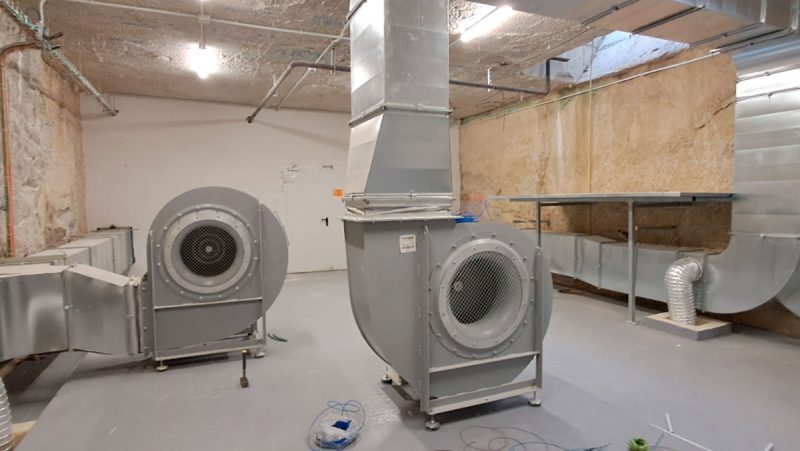 Two of the four fans installed in technical lofts for air renewal in the tunnel