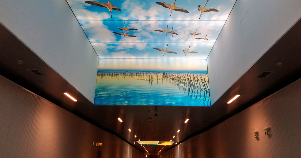 The potential monotony inherent in this type of infrastructure is neutralised by the incorporation of large light wells, which act as spatial landmarks and reference points along the route. These devices introduce colour and establish a visual relationship with the exterior, incorporating carefully selected panoramic views of the urban and regional landscape of Valencia.