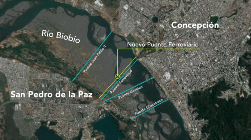 El nuevo puente ferroviario Biobío viene a sustituir a un puente histórico preexistente, que se encuentra ubicado entre las localidades de Concepción y San Pedro de La Paz, en el centro de Chile. Construido en 1889, en su momento fue el primer puente de ferrocarril que permitía la conexión de ambas riberas del río en esa zona.