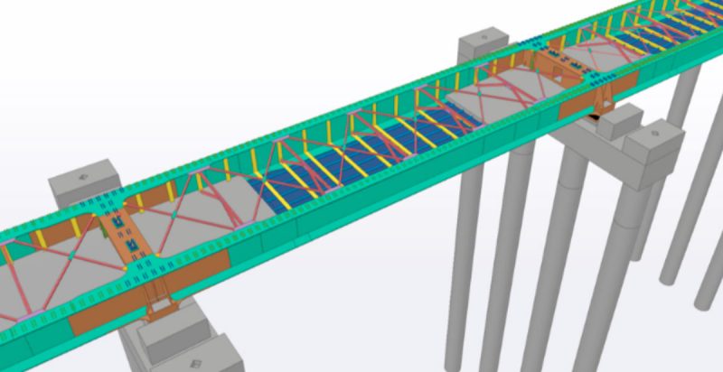 En la parte superior se dispone una celosía con cruces entre diafragmas. Una vez ejecutada la losa superior, esta celosía ya no se considera colaborante a efectos de diseño.